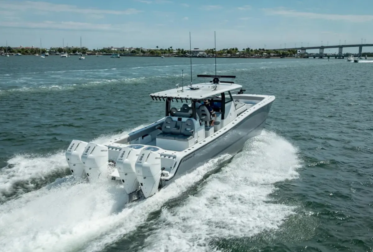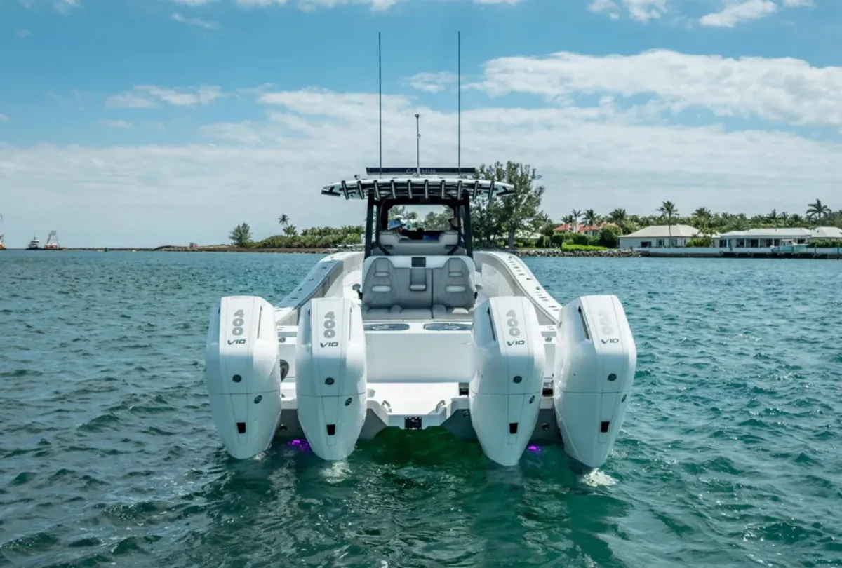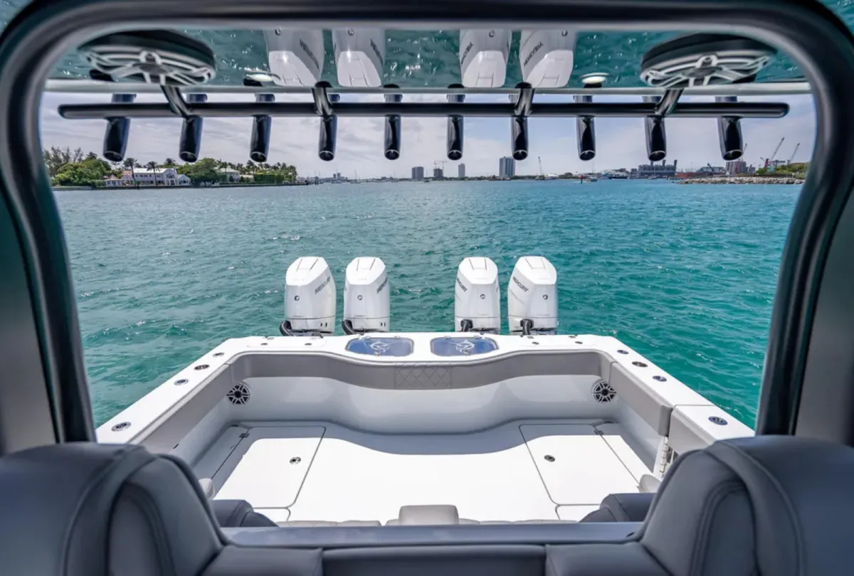 Hull Color: Haze Gray | Engines: Quad Mercury V10s – 420 Hours | Platinum Warranty Through 2029