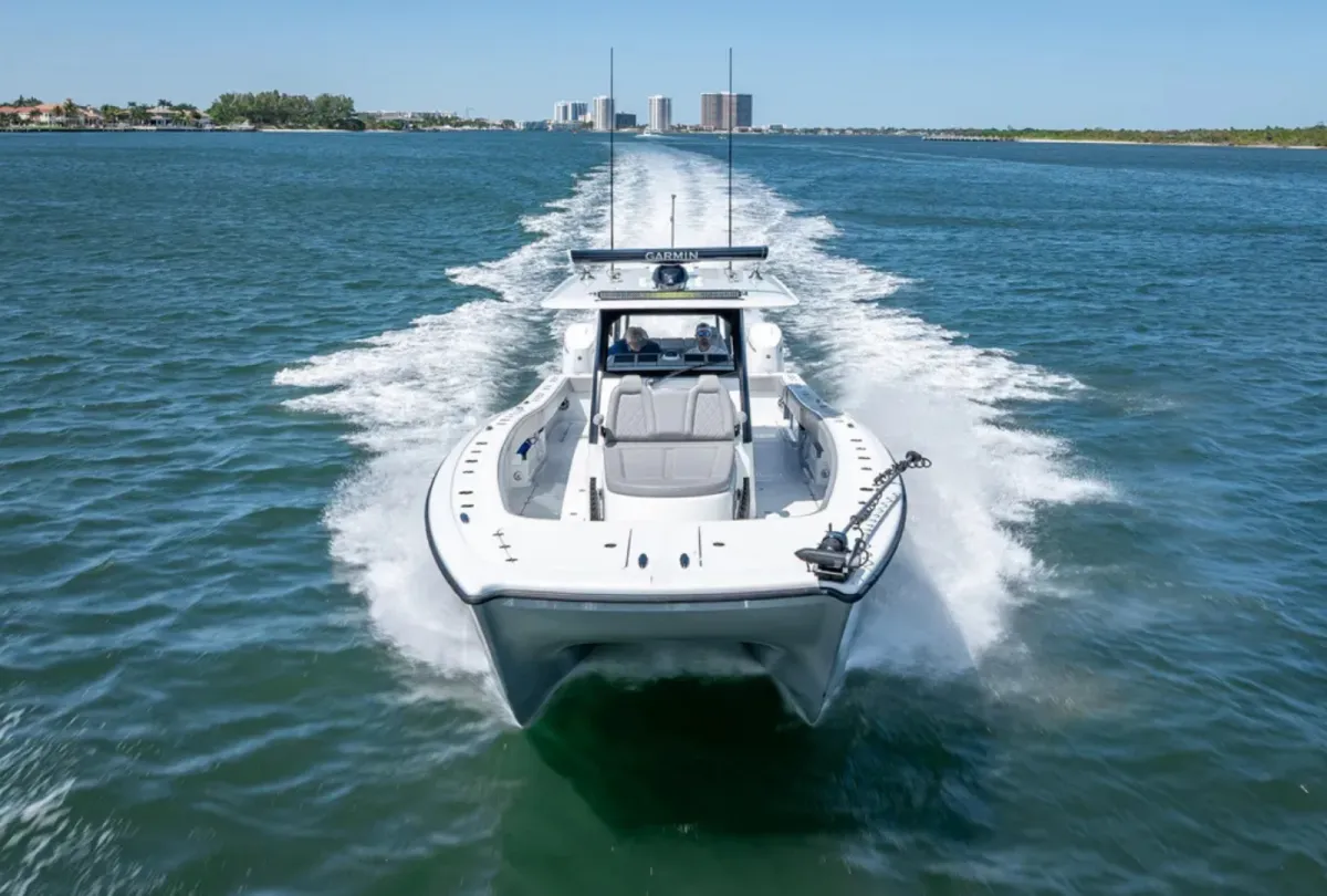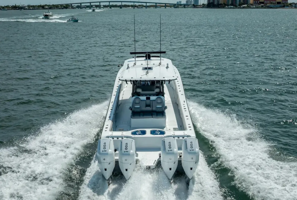 With a stepped catamaran hull, the Freeman 43 blends speed, comfort, and efficiency. Whether chasing trophy fish or cruising with family, she delivers unmatched stability and style.